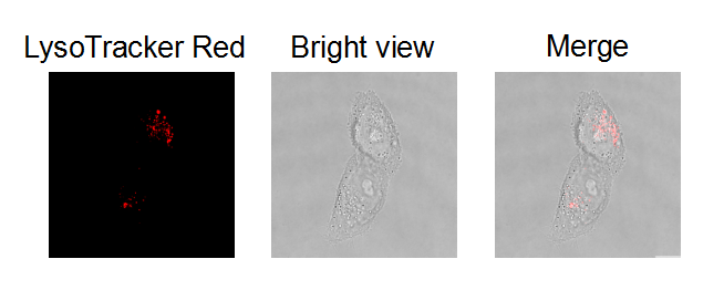LysoTracker Red探針由一種連接一個(gè)弱堿基的熒光基團(tuán)組成,其中僅弱堿可部分提供質(zhì)子,以維持PH在中性值。這使LysoTracker Red探針能自由無阻地滲透細(xì)胞膜,使其能夠標(biāo)記活細(xì)胞。一般聚集在球形細(xì)胞器上,適用于觀察溶酶體內(nèi)部生物合成及相關(guān)發(fā)病機(jī)理。探針對酸性細(xì)胞器有高選擇性,與二硝基苯 (DNP)不同,溶酶體紅色熒光探針DND-99探針不需二抗來檢測。