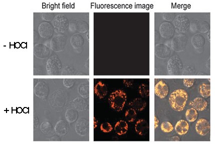 與HOCl反應(yīng)產(chǎn)生強烈熒光。專一性高,背景低;用于生物樣品中HOCl含量的測量與熒光成像;用于Myeloperoxidase (neutrophils) 的活性研究.